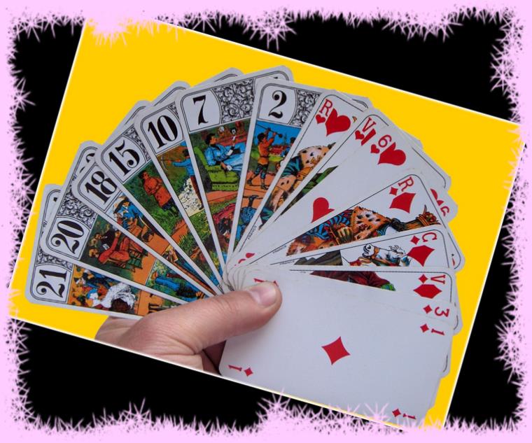 Responsable : Maïté DELORD   Les cartes et le Tarot.Le jeu de Tarot, plus simplement le Tarot, est vraisemblablement le plus ancien des jeux de cartes. Apparu au XV ème siècle, il nous viendrait d'Italie et connaît aujourd'hui un grand nombre d'adeptes. Il se joue avec 78 cartes et avec 4 ou 5 joueurs. Il peut également se jouer à 3 ou à 6, tout dépend de l'ambiance, le principal étant de se distraire. Excellent exercice cérébral, entretien performant de la mémoire, du calcul et de la réflexion, les combinaisons multiples de ce jeu intéressent vite ses pratiquants. |